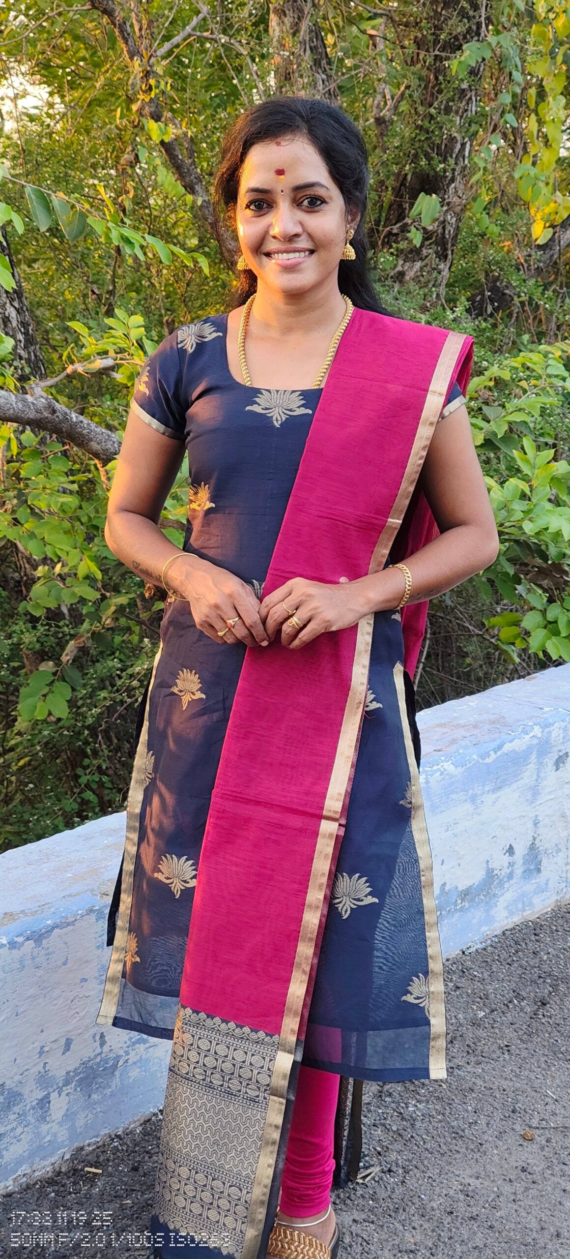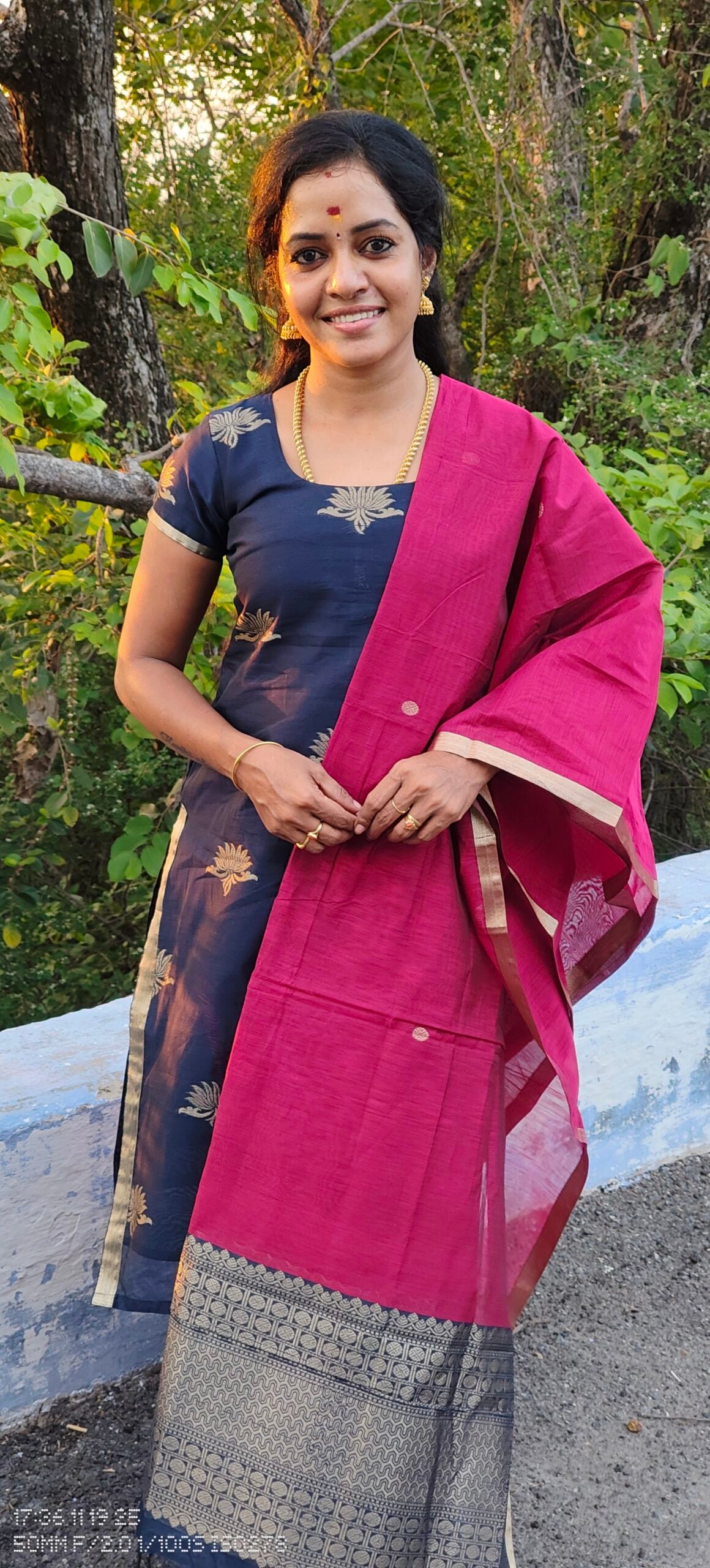 PINK AND NAVY JARI DUPATTA